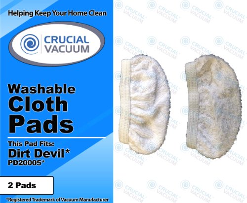 High Quality 2 -Pack Washable Reusable Cleaning Pads Fits Dirt Devil PD20005 Hand Held Steamer; Compare To Devil PD20020, PD20005 Hand Held Steamer Part # 440001017; Designed & Engineered By Crucial Vacuum Review