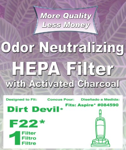 Dirt Devil F-22 Filter for Aspire Uprights. Dirt Devil Part# 084590, F-22 Filter. Filter is OEM Quality with Odor Neutralizing Activated Charcoal inside. 1 Filter Per Package. Made Exclusivly for More Quality Less Money.