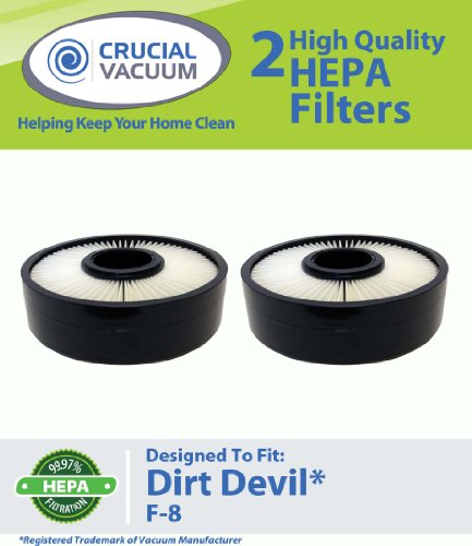 2 Dirt Devil F8 HEPA Filters; Compare with Dirt Devil Part # 3UD0280001, 3-UD0280-001; Designed & Engineered by Crucial Vacuum Review